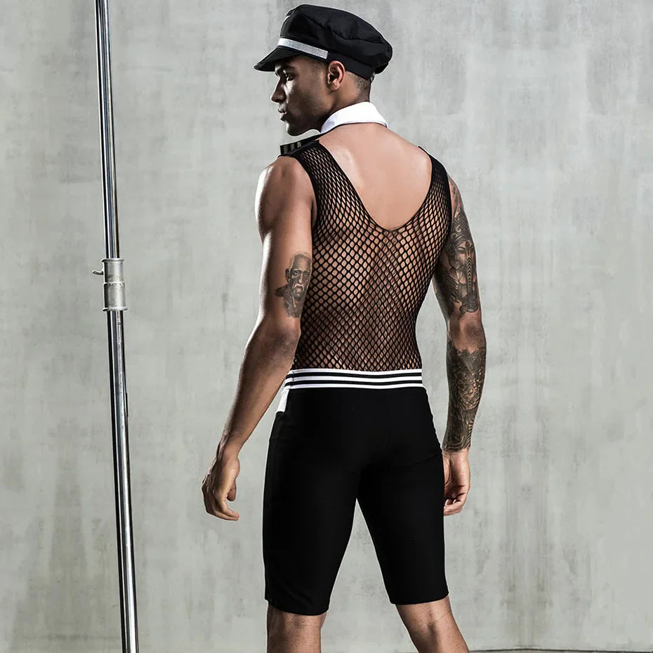 Erotic Mesh Catsuit Pilot Policemen Uniform Lingerie Set Alluring Role Play Outfit