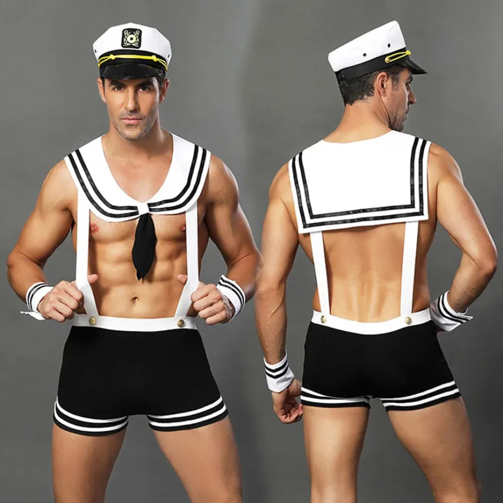 Men Fishnet Bodysuit & Lingerie Set Alluring Cat Cosplay