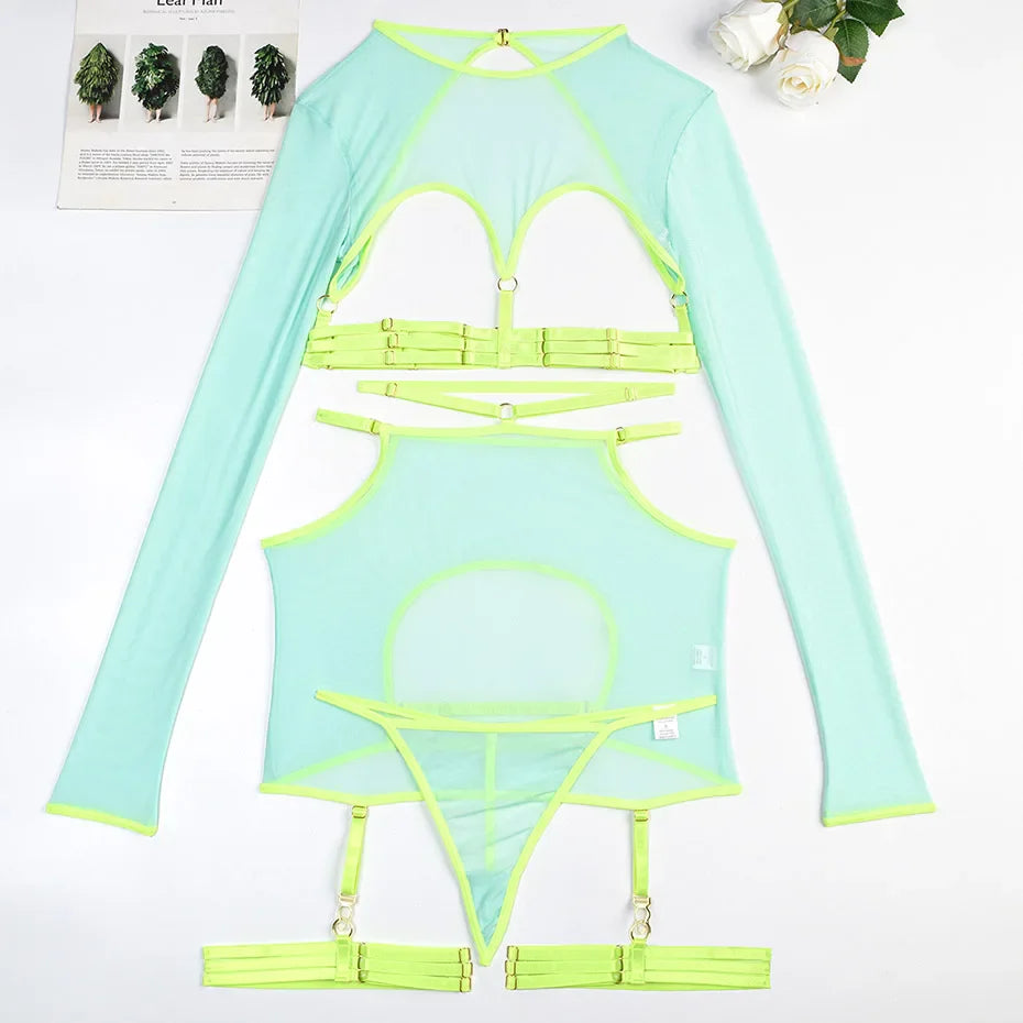 Women Red Thermal Underwear Set Backless Bondage Top & Skirt